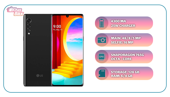 قاب جلویی را تماما صفحه نمایش G-OLED با اندازه ی 6.21 اینچ در بر گرفته است. با توجه به ابعاد گوشی، بریدگی بالای نمایشگر و سایز صفحه نمایش، نسبت نمایشگر به بدنه 82 درصد می باشد. رزولیشن بالای صفحه نمایش باعث می شود شما تصاویر و ویدئو ها را بسیار خوب و لذت بخش تماشا کنید و از آنجایی که ال جی سازنده این صفحه نمایش است پس خیالتان را بابت کیفیت آن راحت می کنیم.