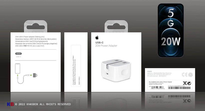 یکی از پرطرفدارترین نمونه‌ها از آداپتورهای آیفون، شارژر 20 وات اپل است و با توجه به اینکه در بازار فروش بسیار بالایی را به خود اختصاص داده است، بد نیست تا به چند نکته هم در مورد این آداپتور اشاره کنیم. طبق معمول ابتدا به سراغ جعبه می‌رویم. جعبه شارژر اصلی که تصویر آداپتور روی آن چاپ شده کاملا به رنگ سفید می‌باشد. توجه به فونتهای نوشته شده روی جعبه از دیگر نکاتی است که باید به آن توجه کنید. پس از این موارد با باز کردن جعبه و دسترسی به آداپتور باید سریال درج شده روی آداپتور و جعبه آن را باهم تطابق دهید. در ضمن نوشته‌های روی آداپتور اصلی بسیار تار و محو چاپ شده‌اند زیرا اپل از جوهری استفاده کرده است که برای محیط زیست ضرری نداشته باشد. اما در نمونه کپی این نوشته ها تیره ‌تر هستند. یکی دیگر از روش‌ها نیز توجه به قسمت اتصال USB و همچنین پین‌های آن است. در نمونه اصلی از آداپتور 20 وات اپل، شما 8 پین می‌بینید که تعداد شش پین از آن در قسمت وسطی و کنار یکدیگر قرار دارند و دو پین در اطراف آنها جای گرفته‌اند اما در نمونه تقلبی نظم خاصی را بین این پین ها نمی بینید.
