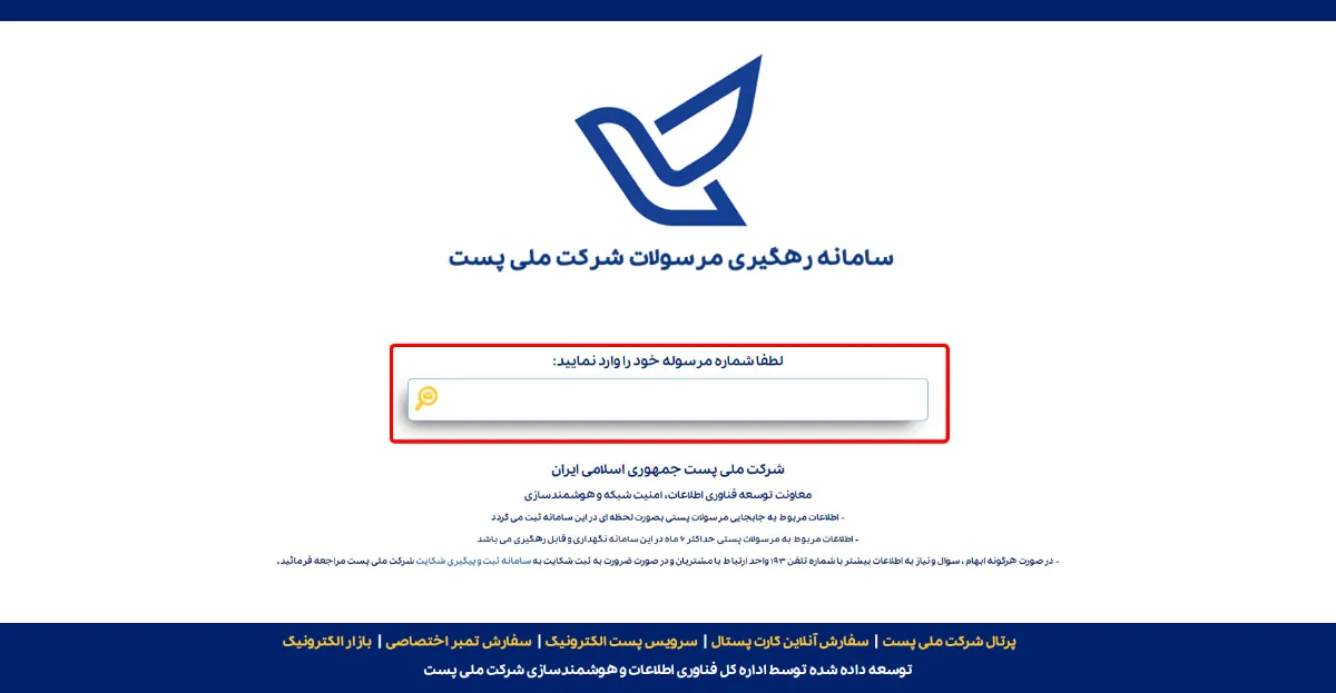 برای رهگیری مرسوله پستی خود باید به سایت tracking.post.ir مراجعه کنید. کد رهگیری 16 رقمی پیامک شده را در کادر وسط صفحه وارد کنید و روی علامت ذره بین بزنید.