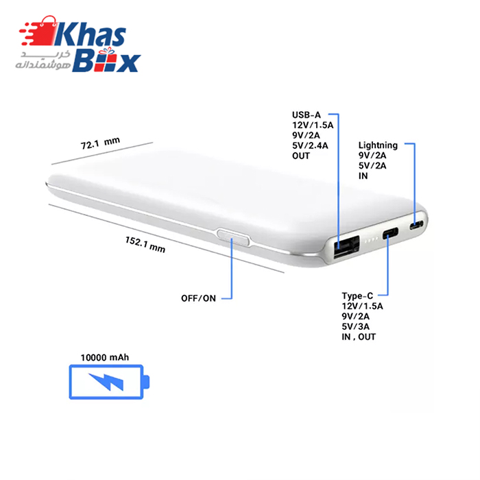 - پورت 5V/2.4A;9V/2A; 12V/1.5A : USB-A