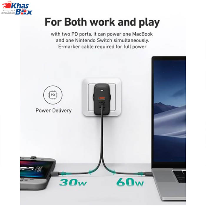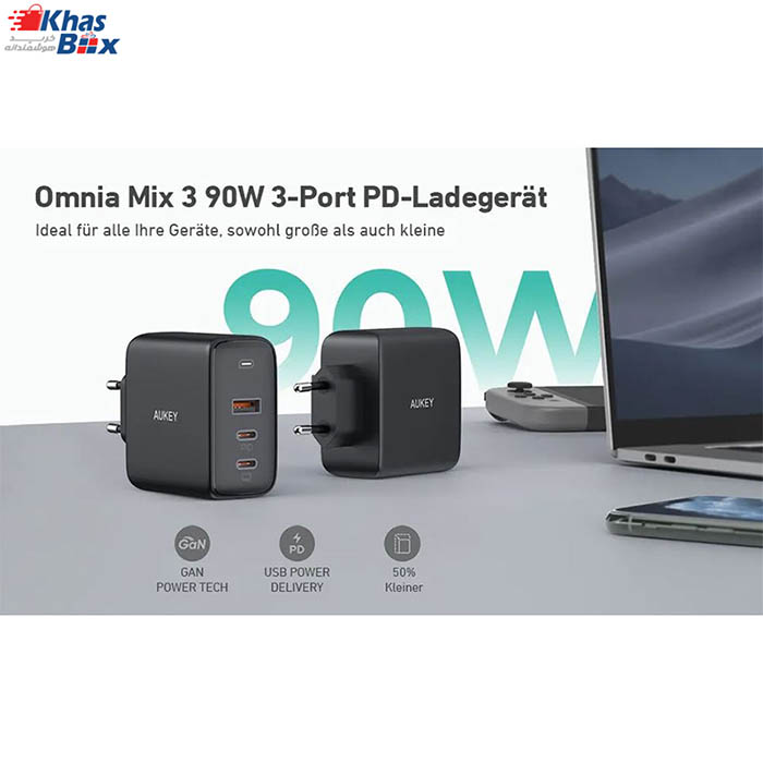 شارژر دیواری 3 پورت 90 وات آکی