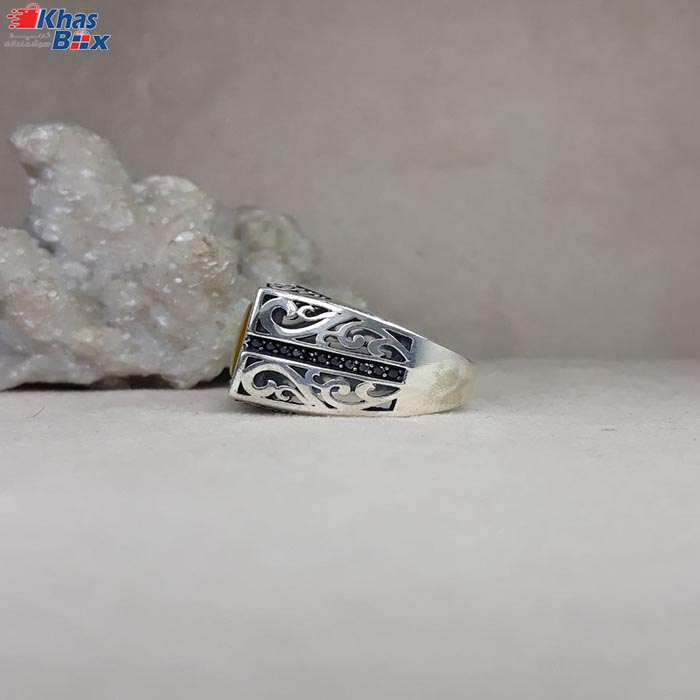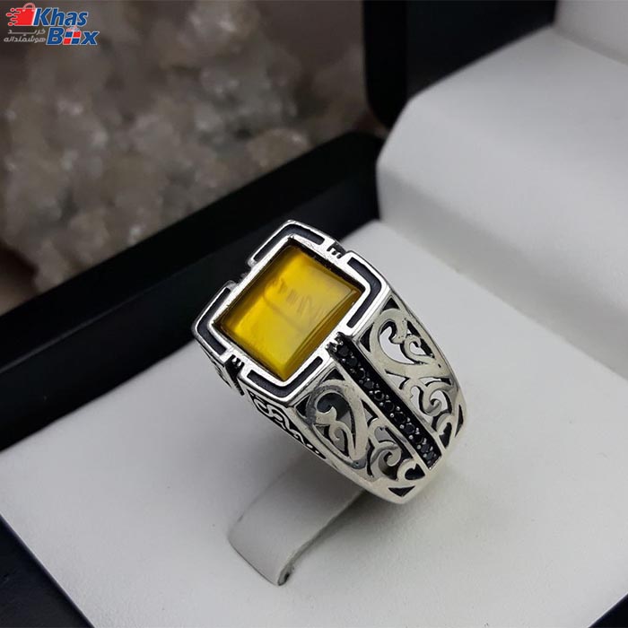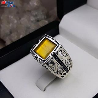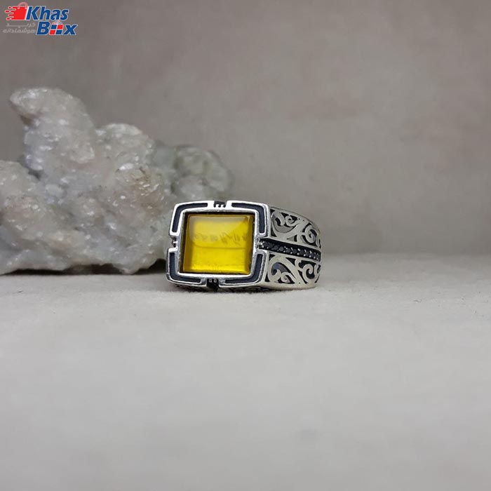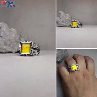 انگشتر عقیق مردانه زرد شرف الشمس چهارگوش