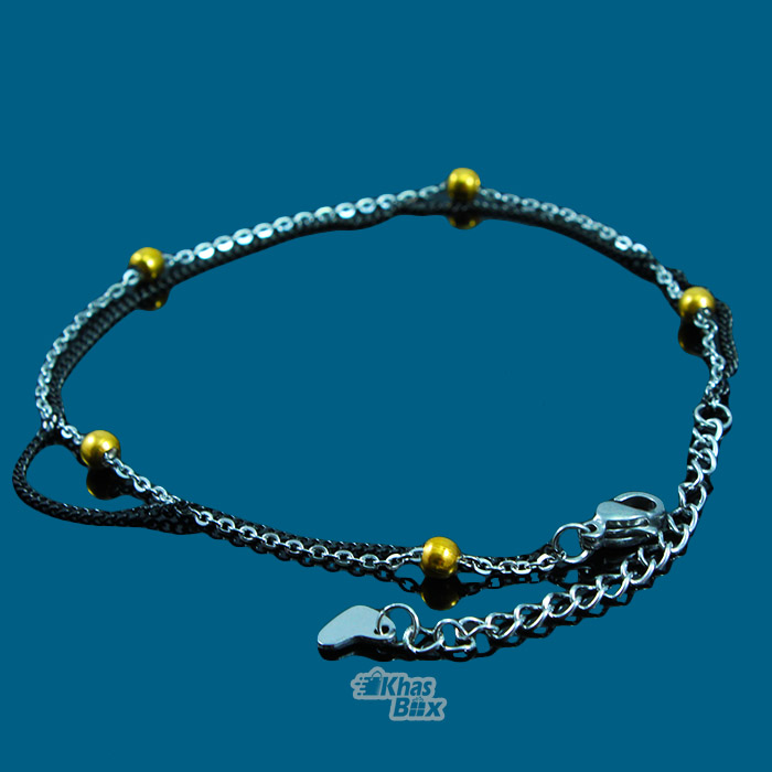 دستبند زنجیری دخترانه با زنجیر مشکی طلایی مدل DT-65