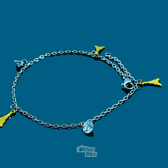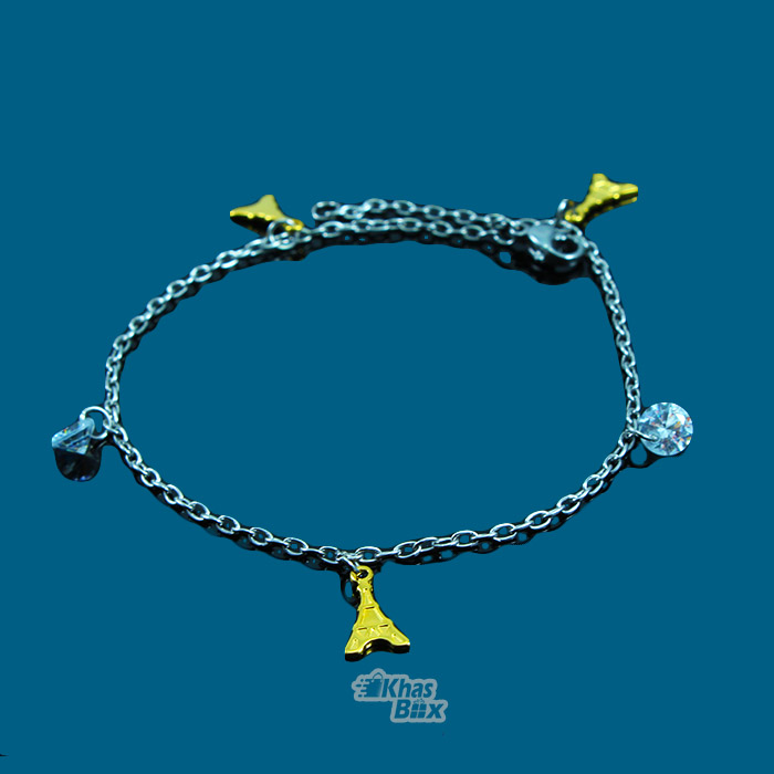 دستبند زنجیری نقره ای دخترانه اویزدار برج ایفل طلایی DT-65