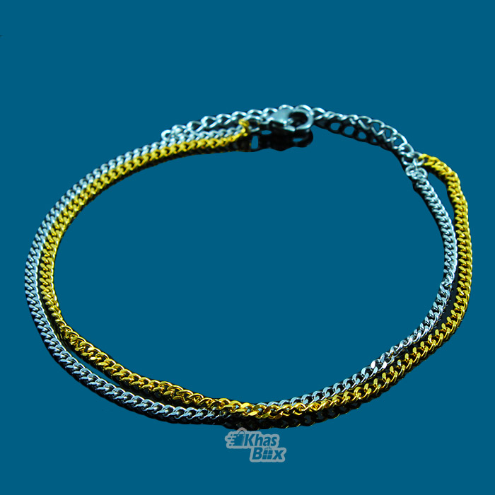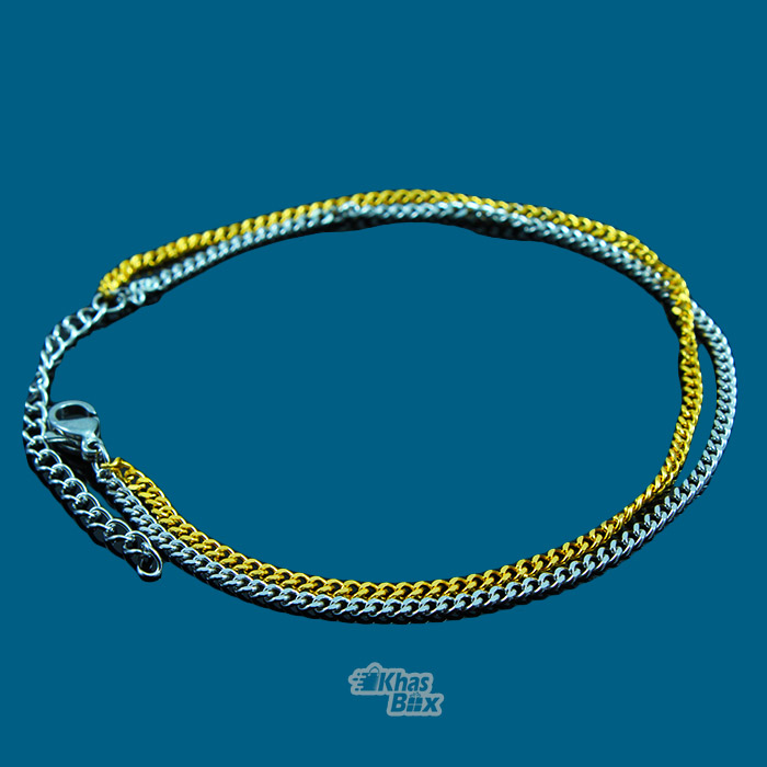 دستبند زنجیری دخترانه با زنجیر نقره ای طلایی مدل DT-65
