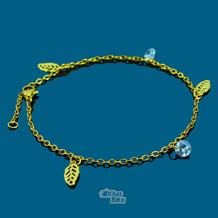 دستبند طلایی دخترانه با آویز برگ مدل DT-65