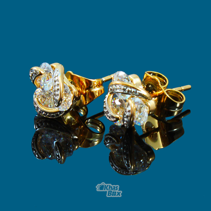 گوشواره ظریف طلایی با نگین الماسی مدل GT-22