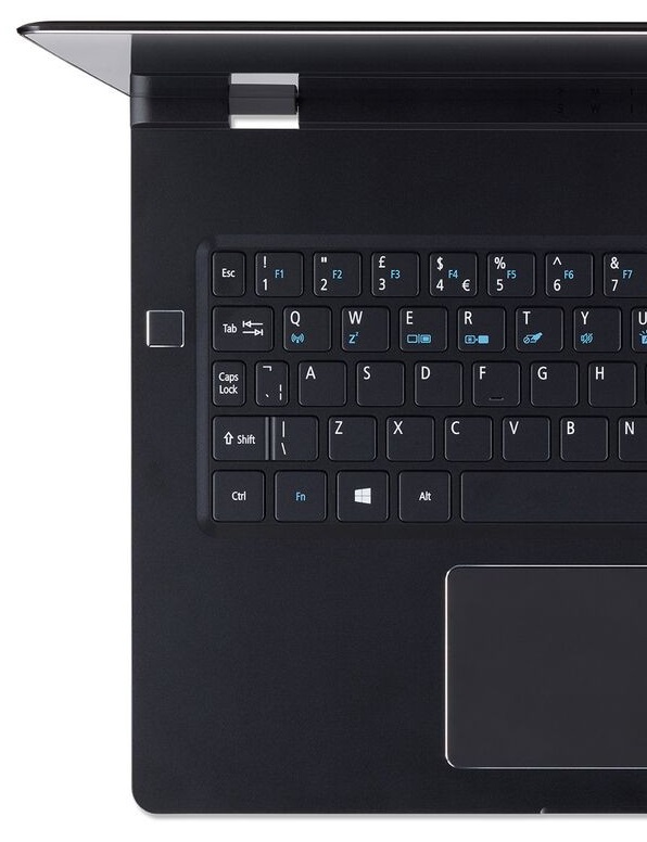 اصولِ ارگونومی در طراحی صفحه کلید حیاتی است چرا که رعایتِ همین قوانین پیشِ پا افتاده میتواند در استفاده ی طولانی مدت از لپ تاپ الائم و نشانه های خود را در سهولتِ استفاده نشان دهد، ایسر هم با علمِ به این مسئله فواصلِ میان کلید ها را به گونه ای قرار داده که تا حد ممکن از تایپِ اشتباه کلمات جلوگیری شود و همچنین با ظرافتِ طراحی دکمه ها نیز از خستگی دستان کاربر جلوگیری شود، یکی دیگر از نکاتی که توجه کاربران را به خود جلب میکند مربع کوچکی است که در کنارِ کیبورد مشاهده میشود و با ثبتِ اثر انگشت کاربر قادر است سطحِ امنیتِ اطلاعاتِ لپ تاپ را بالا ببرد. تاچ پد نیز از ابعاد بزرگی برخوردار است و در طراحی آن از جایگذاری دکمه جلوگیری شده تا در ضمنِ ایجادِ فضای بیشتر برای کاربر به زیبایی آن هم بیش از پیش افزوده شود.