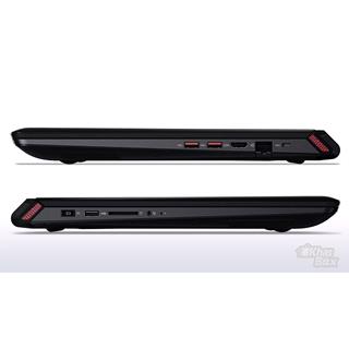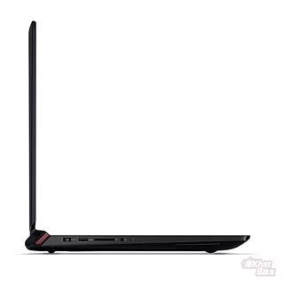 طراحی منحصربفرد و خاص این لپ تاپ حتی با یک بار دیدن، خیلی خوب در خاطرتان می ماند چراکه بدنه ی این دستگاه از آلیاژ آلومینیوم برس خوردهی مشکی مات با نقوشی ریز و ضربدری و پلاستیک فشرده ساخته شده و بسیار مقاوم است. دریچه های قرمز رنگ توری در دو طرف لپ تاپ، محل استقرار اسپیکرهای JBL با فناوری دالبی می باشند که صدای شفافی برای کاربر به ارمغان می آورند، همچنین قرارگیری سابووفر در زیر لپ تاپ مسئولیت تولید قدرت صدا را به عهده دارد. گفتنی است که این شرکت نیز طبق رسم جا افتاده برای لپ تاپ های مخصوص بازی، از ترکیب رنگ مشکی و قرمز در کنار هم برای تزئین این دستگاه استفاده کرده است. این لپ تاپ ضخامت 26 میلیمتری دارد که وزن حدود 2.6 کیلوگرم را با همه ی امکانات درونی خود دارا می باشد. صفحه ی نمایش 17 اینچی با پنل IPS و روکش مات با دقت وضوح Ultra HD تصویر بسیار با کیفیتی به نمایش می گذارد. از دیگر عناصر ظاهری این دستگاه می توان به کیبورد جزیره ای با استاندارد AcvcuType انحصاری لنوو اشاره کرد که مجهز به نور پس زمینه ی قرمز می باشد. لنوو با تفکری هوشمندانه و صرف نظر کردن از پورت های DisplayPort و USB Type-C سعی کرده است قیمت تمام شده ی این لپ تاپ را تا حد قابل قبولی پایین آورد.