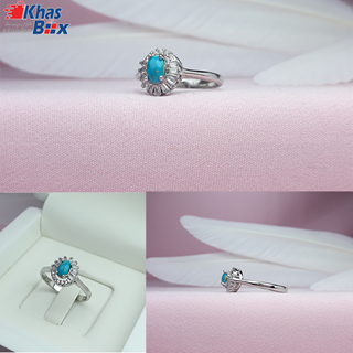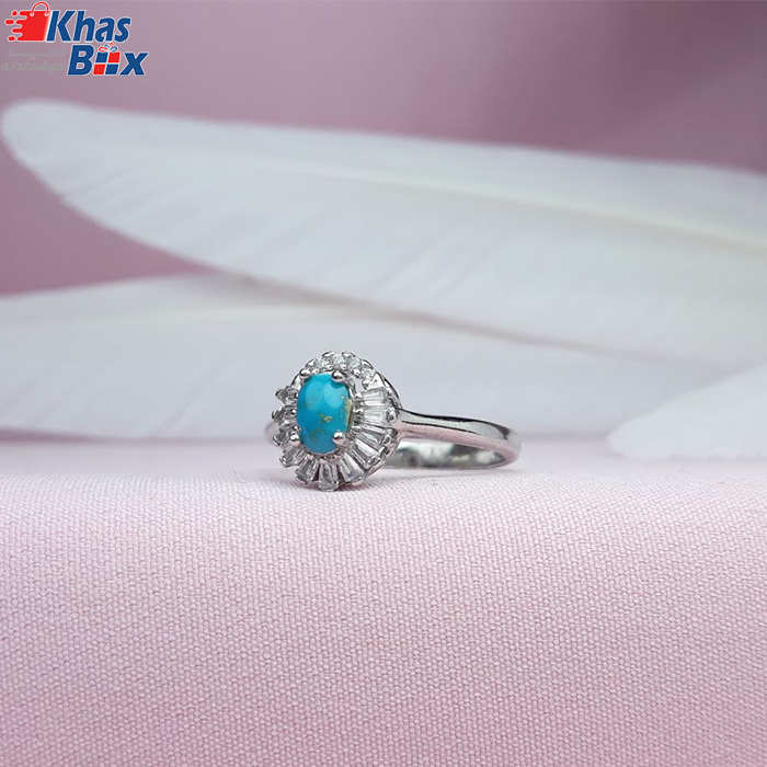 انگشتر زنانه فیروزه نیشابوری یک انگشتر فاخر و نفیس میباشد که این نگین زیبا بر روی رکابی از نقره با بالاترین عیار ممکن جا خوش کرده است. قطعا شما هم میدانید زیبایی انگشتر روی دست دو چندان میشود. این محصول اثری زیبا و ماندگار برای استفاده شخصی یا مناسب هدیه به عزیزانتان می باشد. اگر قصد خرید انگشتر زنانه فیروزه نیشابوری را دارید بهتر است بدانید این انگشتر دست ساز بوده و دارای رکابی با طرح ترک است. قیمت انگشتر فیروزه نیشابوری زنانه در این صفحه بروز و معتبر است و نیازی به استعلام تلفنی نیست ولی ما در تمام ساعات شبانه روز آماده پاسخگویی به سوالات شما و مشاوره در رابطه با خرید انگشتر هستیم. مشخصات دقیق این انگشتر از قبیل وزن و قطر نگین و ... در قسمت زیر نوشته شده است همچنین برای تعیین سایز انگشتر میتوانید به این لینک مراجعه کرده یا با پشتیبانی واتس آپ ارتباط برقرار نمایید. در صورتیکه تمایل دارید مستقیما و بدون مشاوره انگشتر مورد نظر را خریداری کنید به یاد داشته باشید حتما در قسمت آدرس سایز انگشتر یا اندازه دور انگشت را به میلی متر ذکر کنید.