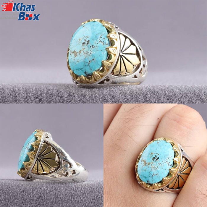 انگشتر مردانه فیروزه نیشابوری یک انگشتر فاخر و نفیس میباشد که این نگین زیبا بر روی رکابی از نقره با بالاترین عیار ممکن جا خوش کرده است. قطعا شما هم میدانید زیبایی انگشتر روی دست دو چندان میشود. این محصول اثری زیبا و ماندگار برای استفاده شخصی یا مناسب هدیه به عزیزانتان می باشد. اگر قصد خرید انگشتر مردانه فیروزه نیشابوری را دارید بهتر است بدانید این انگشتر دست ساز بوده و دارای رکابی با طرح ترک است. قیمت انگشتر مردانه فیروزه نیشابوری در این صفحه بروز و معتبر است و نیازی به استعلام تلفنی نیست ولی ما در تمام ساعات شبانه روز آماده پاسخگویی به سوالات شما و مشاوره در رابطه با خرید انگشتر هستیم. مشخصات دقیق این انگشتر از قبیل وزن و قطر نگین و ... در قسمت زیر نوشته شده است همچنین برای تعیین سایز انگشتر میتوانید به این لینک مراجعه کرده یا با پشتیبانی واتس آپ ارتباط برقرار نمایید. در صورتیکه تمایل دارید مستقیما و بدون مشاوره انگشتر مورد نظر را خریداری کنید به یاد داشته باشید حتما در قسمت آدرس سایز انگشتر یا اندازه دور انگشت را به میلی متر ذکر کنید.