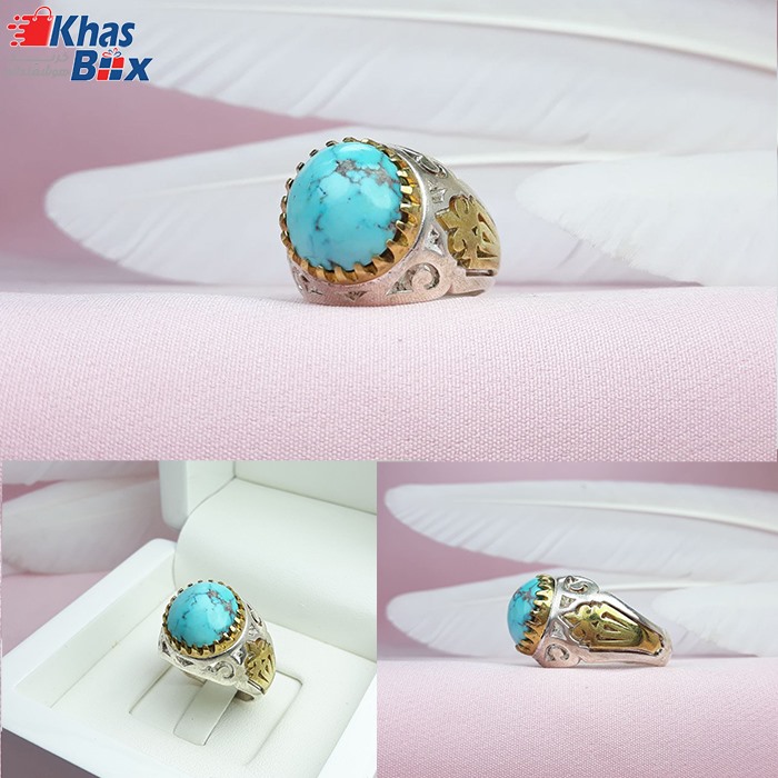 انگشتر مردانه فیروزه نیشابوری یک انگشتر فاخر و نفیس میباشد که این نگین زیبا بر روی رکابی از نقره با بالاترین عیار ممکن جا خوش کرده است. قطعا شما هم میدانید زیبایی انگشتر روی دست دو چندان میشود. این محصول اثری زیبا و ماندگار برای استفاده شخصی یا مناسب هدیه به عزیزانتان می باشد. اگر قصد خرید انگشتر مردانه فیروزه نیشابوری را دارید بهتر است بدانید این انگشتر دست ساز بوده و دارای رکابی با طرح ترک است. قیمت انگشتر مردانه فیروزه نیشابوری در این صفحه بروز و معتبر است و نیازی به استعلام تلفنی نیست ولی ما در تمام ساعات شبانه روز آماده پاسخگویی به سوالات شما و مشاوره در رابطه با خرید انگشتر هستیم. مشخصات دقیق این انگشتر از قبیل وزن و قطر نگین و ... در قسمت زیر نوشته شده است همچنین برای تعیین سایز انگشتر میتوانید به این لینک مراجعه کرده یا با پشتیبانی واتس آپ ارتباط برقرار نمایید. در صورتیکه تمایل دارید مستقیما و بدون مشاوره انگشتر مورد نظر را خریداری کنید به یاد داشته باشید حتما در قسمت آدرس سایز انگشتر یا اندازه دور انگشت را به میلی متر ذکر کنید.