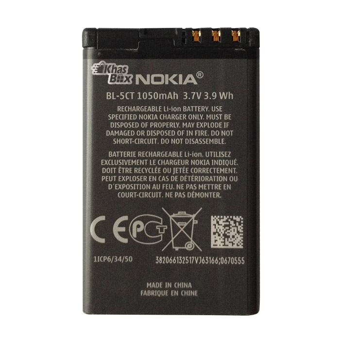 این باتری با ظرفیت 1050 میلیآمپر ساعت و ولتاژ 3.7 ولت،با دستگاه هوشمند نوکیا 6303i Classic سازگار است.