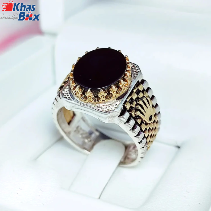 انگشتر مردانه عقیق سیاه طرح رولکسی