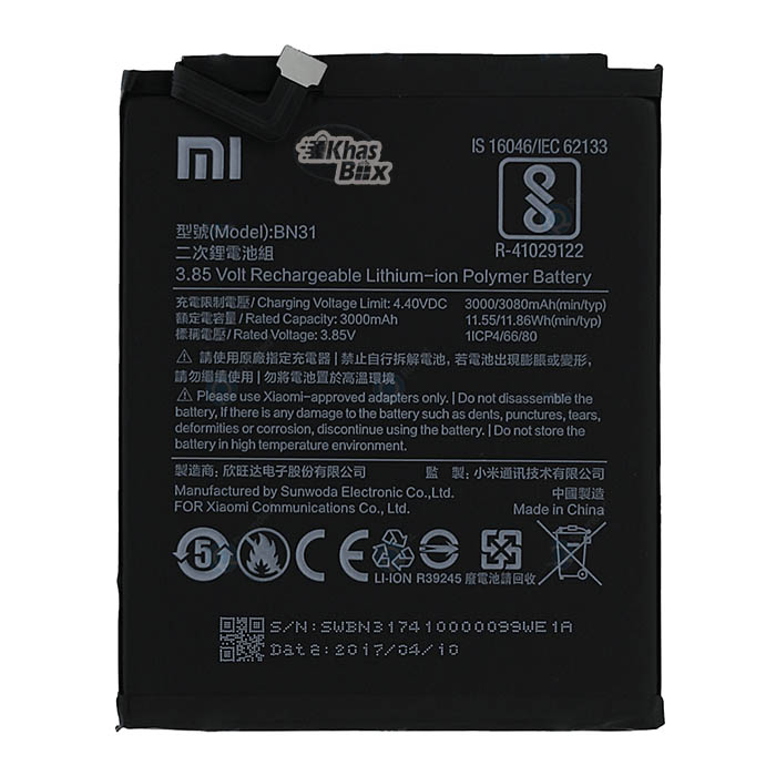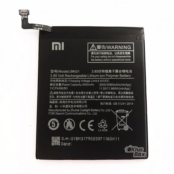 این باتری دارای ظرفیت 3000 میلی آمپر ساعت می باشد و از نوع لیتیوم-یونی است. لازم بذکر است باتری گوشی شیائومی Note 5A براحتی قابل تعویض نیست و برای اینکار باید قاب پشت گوشی توسط فرد متخصص باز شود و باتری تعویض گردد. ضمنا به دلیل ماهیت فیزیکی خاص این باتری (داشتن فلت باریک و حساس) این باتری ها دارای گارانتی سلامت فیزیکی به مدت 24 ساعت هستند. این باتری ها داری گارانتی شرکتی بوده که تا 3 ماه هر گونه خرابی غیر از آسیب فیزیکی و آبخوردگی را پشتیبانی می کنند .