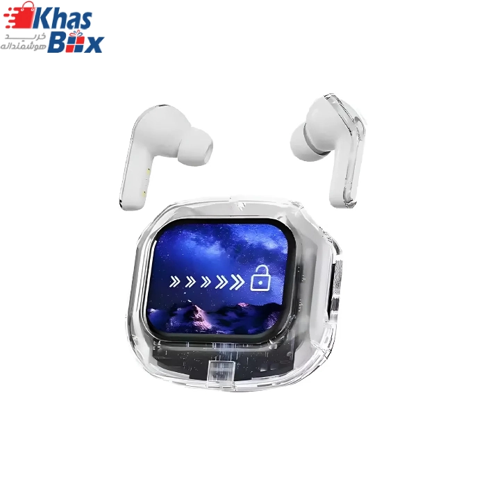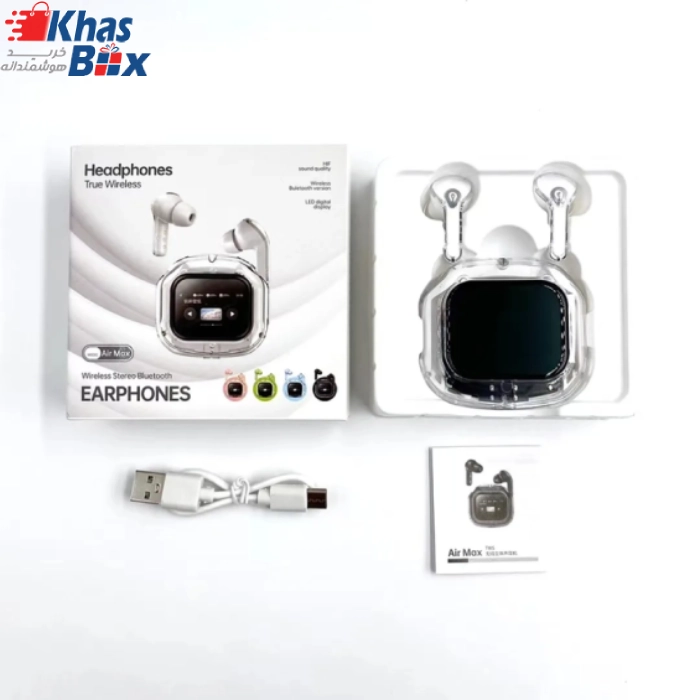 هندزفری بلوتوثی طرح ایرپاد شیشهای مدل Air Max با طراحی مدرن و کیس شارژ شفاف، انتخابی عالی برای استفاده روزمره و ورزش است. این ایرپاد دارای صفحه نمایش LCD رنگی و پنل لمسی روان است که امکانات متعددی مثل تغییر تم و تصویر زمینه، قفل نمایشگر، کنترل پخش موسیقی و مکالمه، و حتی استفاده به عنوان شاتر دوربین موبایل را فراهم میکند.