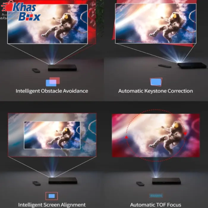 فناوری ToF Auto Focus و Keystone Correction چهار نقطهای باعث میشود تصویر همیشه صاف، متقارن و بدون اعوجاج نمایش داده شود؛ مهم نیست پروژکتور را در چه زاویهای قرار داده باشید.