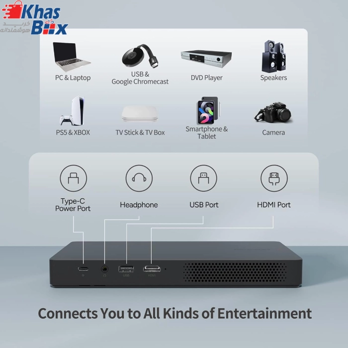 پروژکتور با رزولوشن واقعی 1080p و پشتیبانی از محتوای 4K، تصاویری شفاف، رنگهایی زنده و جزئیاتی دقیق ارائه میدهد. نمایش محتوا روی پردهای تا 120 اینچ تجربهای جذاب و سینمایی را برای شما فراهم میسازد.