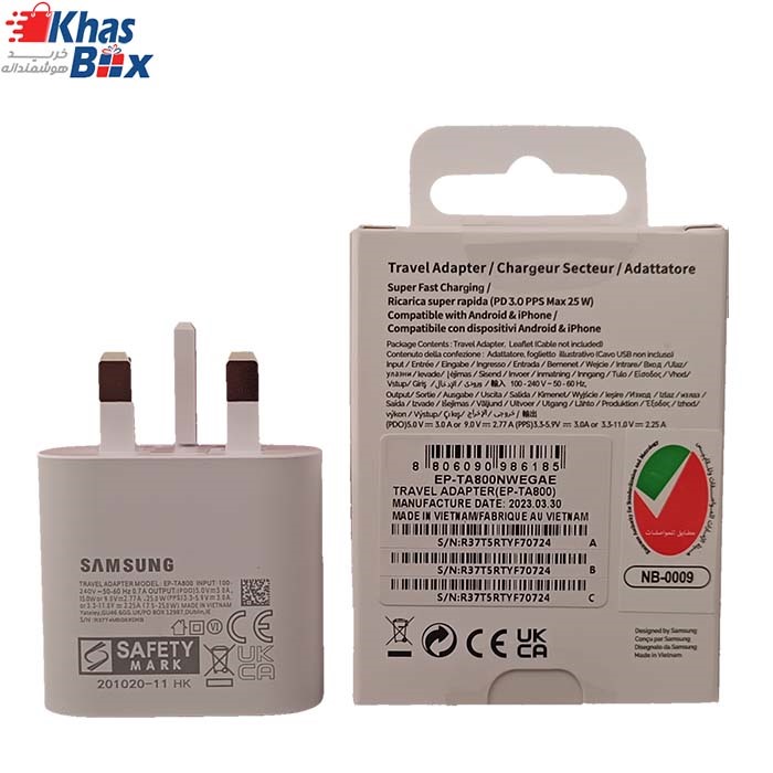 آداپتور شارژ سریع 25 وات اصلی Galaxy S21 Ultra سامسونگ ساخت ویتنام سربال دار (EP-TA800)