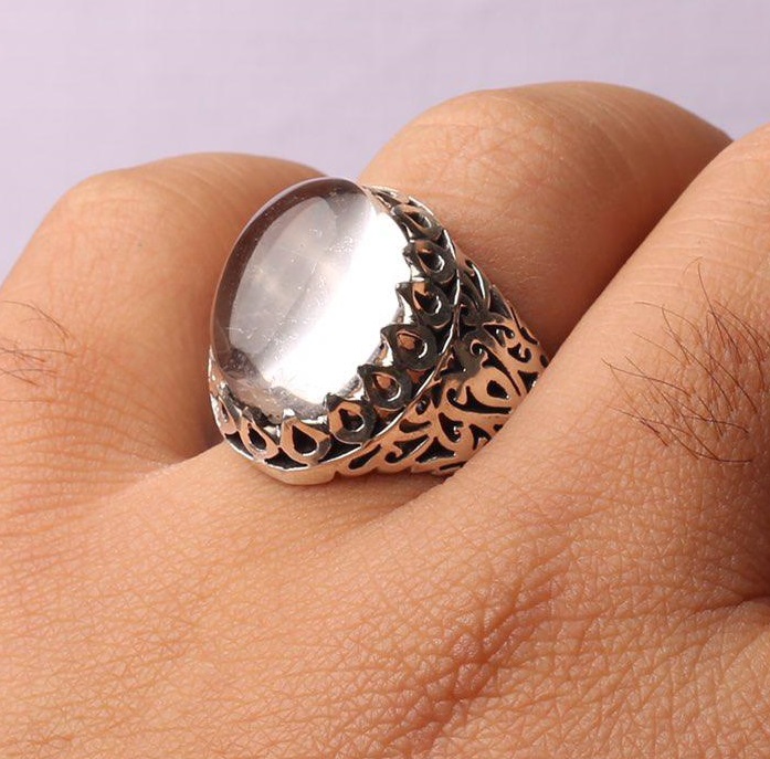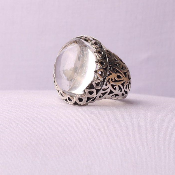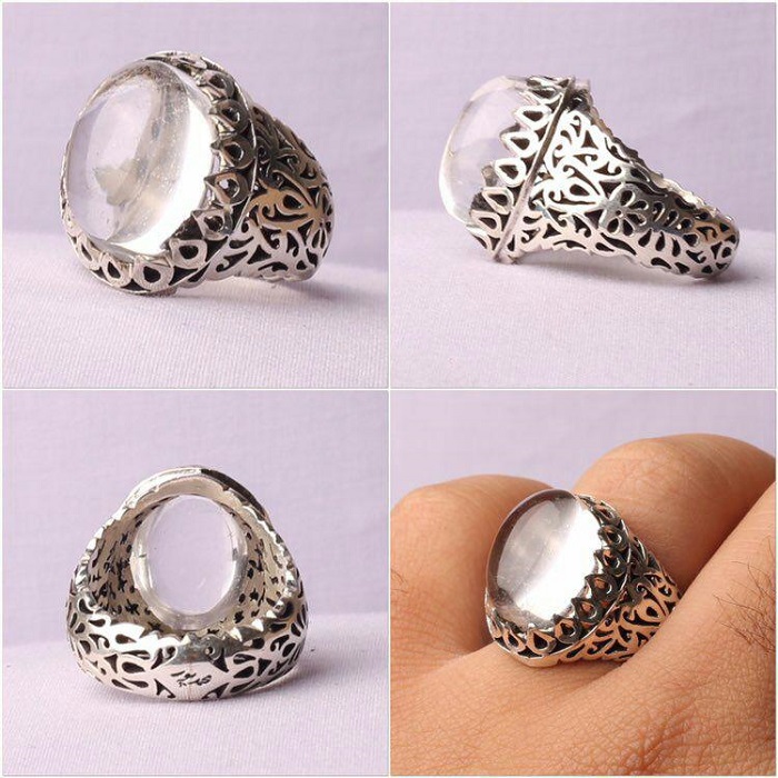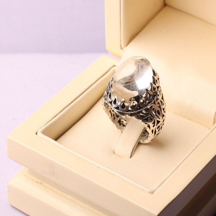 انگشتر در نجف اصل رکابی نفیس و ارزشمند شبکه کاری بسیار زیبا و نفیس اثری هنرمندانه با امضا استاد محمدپور وزن : ۱۷ گرم عیار : ۹۲۵