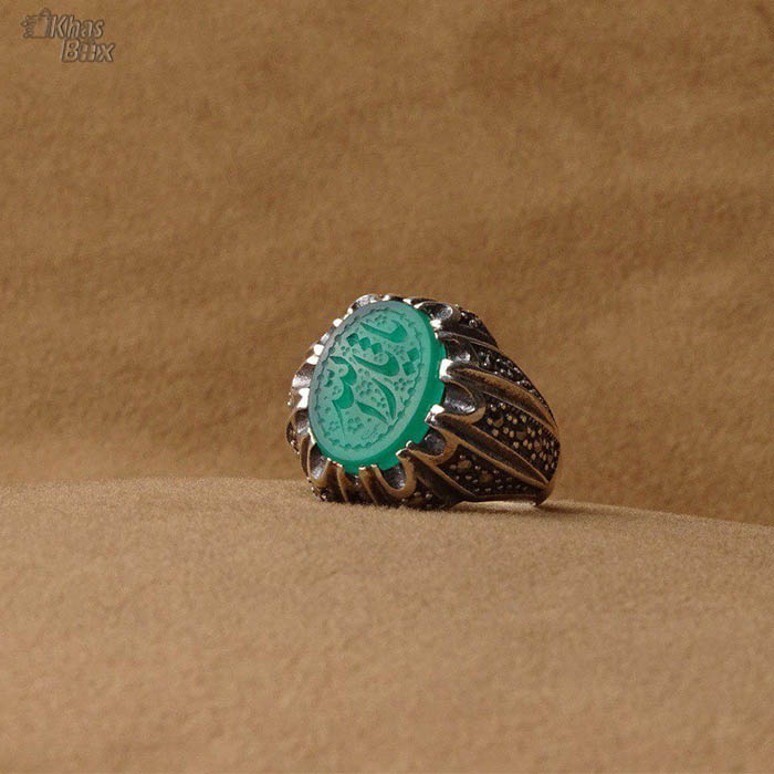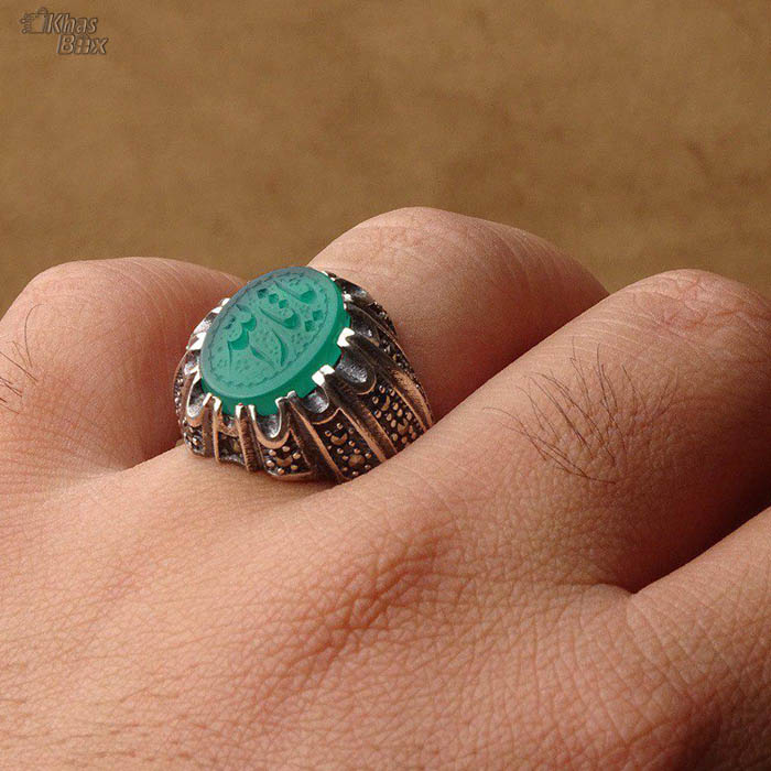 انگشتر عقیق سبز خوشرنگ خطی: