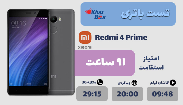 ما تستها و آزمونهای مربوطه را روی باتری Xiaomi Redmi 4 Prime انجام دادیم و نتیجه امتیاز 91 ساعته برای این باتری به ثبت رسید که به طور شگفت انگیزی پایین تر از نتیجهای بود که در Redmi 4 مشاهده کردیم. این نتیجه قطعا از قسمت آماده به کار گوشی سرچشمه میگیرد، زیرا در غیر این صورت، در سه تست مکالمه، مرور وب و ویدئو این گوشی امتیاز بهتری کسب کرده است. این مصرف برق غیرمعمول در حالت آماده به کار ممکن است مربوط به نرم افزار باشد و با به روزرسانیهایی که شیائومی در آینده منتشر میکند رفع شود.