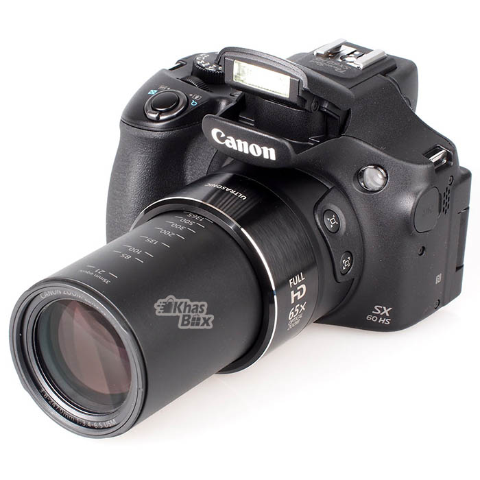 «پاورشاتSX60 HS» یکی از محصولات کمپانی بزرگ Canon می باشد. این دوربین دارای یک سنسور تصویر 17 مگاپیکسلی از نوع CMOS با ابعاد 1/2.3 اینچمی باشد.لنز بزرگ بهکار رفته در این دوربین،بابزرگنمایی 65 برابر از دامنهی فاصلهی کانونی 21 تا 1365 میلیمتر ساخته شده است . همانطور که میبینید، این لنز ضمن اینکه در انتهای تلهی خود بهبود پیدا کرده؛در انتهای واید هم ارتقای لنز مشاهده میشود. این محدوده فاصلهی کانونی، توان عکاسی مناظر بسیار گسترده و سوژههای بسیار دور را برای استفاده کنندگان این سوپرزوم قدرتمند به ارمغان آورده است.