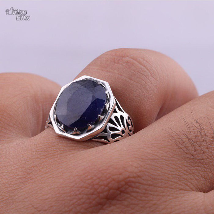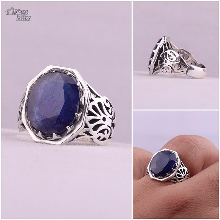 این انگشتر دارای رکاب شبکه جدید بوده و بسیار ظریف و زیباست. ترکیب رکاب نقره با طراحی فوق العاده با گوهری کمیاب مثل یاقوت کبود آفریقایی در این انگشتر مردانه جلوه بصری زیبایی خلق کرده است. این انگشتر ظریف و زیبا با عیار 925 ساخته شده و در مجموع 9.55 گرم وزن دارد.کلیه انگشتر ها از جمله همین انگشتر یاقوت کبود در کارگاهی با اصالت و قدیمی کنار حرم مطهر امام رضا علیه السلام ساخته میشوند. هنر دستان اساتید با تجربه و گوهری گران بها چون یاقوت کبود و نقره که از دل زمین به دست می آید میتواند انرژی ها منفی را از شخص استفاده کننده دور نماید.