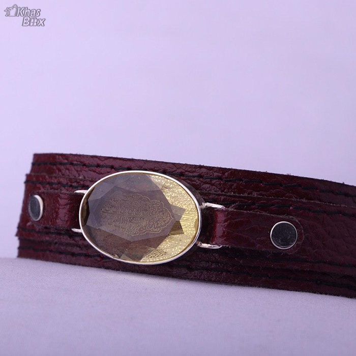 دستبند الکساندریت نقش و من یتق الله چرم گاوی طبیعی