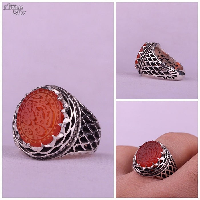 انگشتر عقیق یمنی خطی نقش یا رقیه بنت الحسین خط احمد رکاب دستساز استاد محمد پور وزن ۱۵/۵ گرم پس از ثبت سفارش لطفا شماره سایزانگشت خود را به واحد پشتیبانی اعلام نمایید.