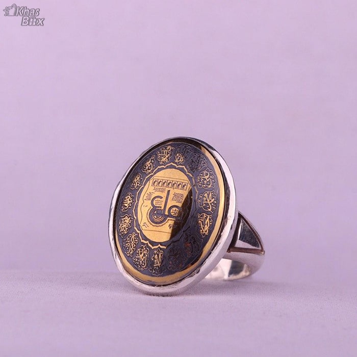 انگشتر حدید خطی نقش حرز عین علی چهارده معصوم وزن ۱۸/۴۸ گرم