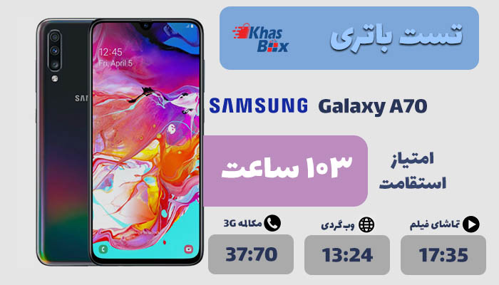 کاربر گرامی قبل از اینکه با عملکرد و بازدهی باتری سامسونگ A70 آشنا شوید، توجه به این نکته ضروری است که این نتایج توسط سایت معتبر Gsmarena کسب شده و مربوط به باتری اورجینال و کارخانه شرکت سازنده است. ضمناً این تستها با میزان مشخصی از روشنایی صفحه نمایش و حجم صدا گرفته شده است، پس ممکن است نتایجی که شما با باتری خریداری شده و حالتهای مختلف کسب میکنید، کمی با این نتایج متفاوت باشد که جای نگرانی ندارد و کارکرد باتری شما کاملاً طبیعی و در حالت استاندارد است.