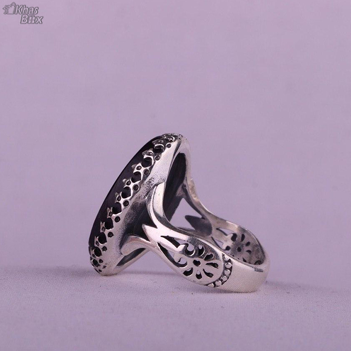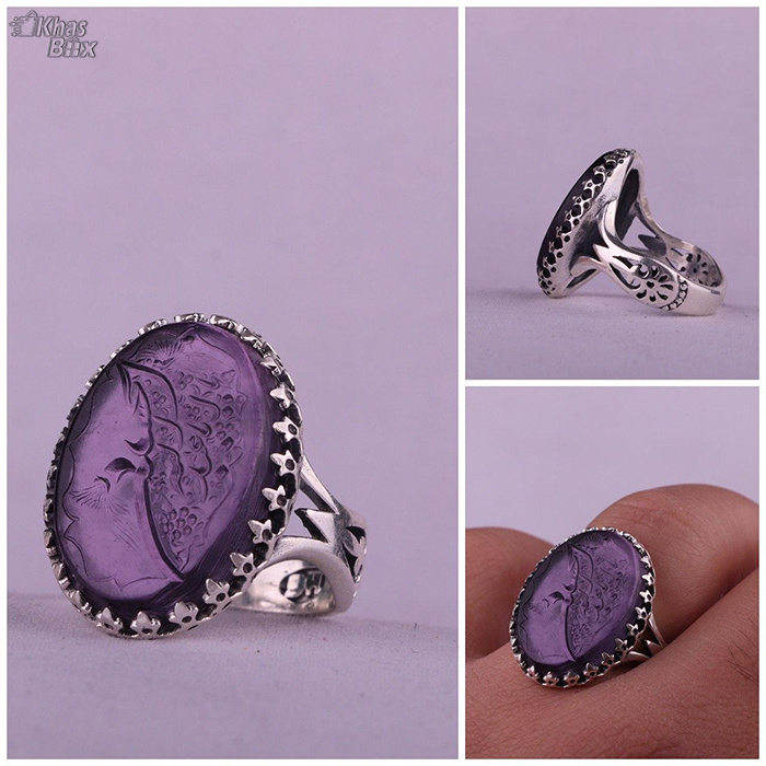 انگشتر کهربا خطی نقش یا ابا عبدالله الحسین وزن ۹/۷ گرم