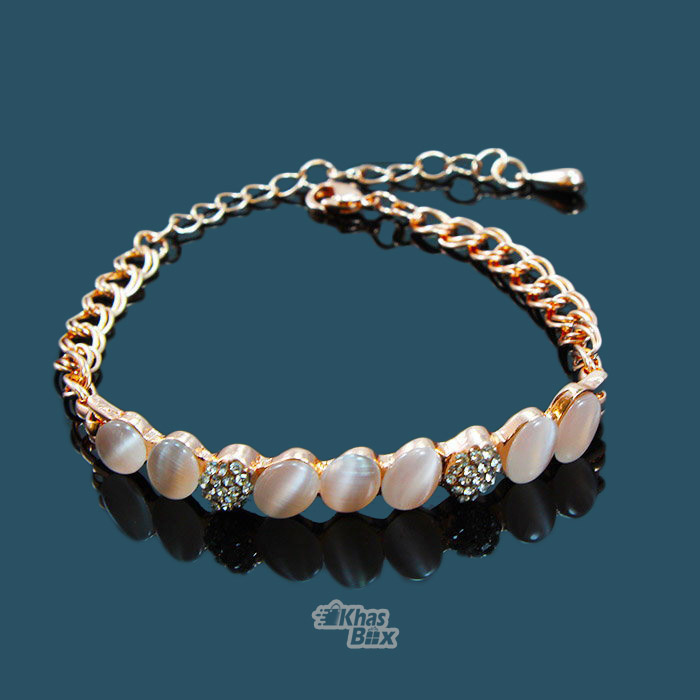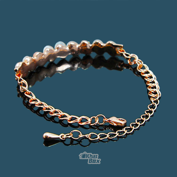 دستبند طلایی هفت نگین صورتی مدل DT-65