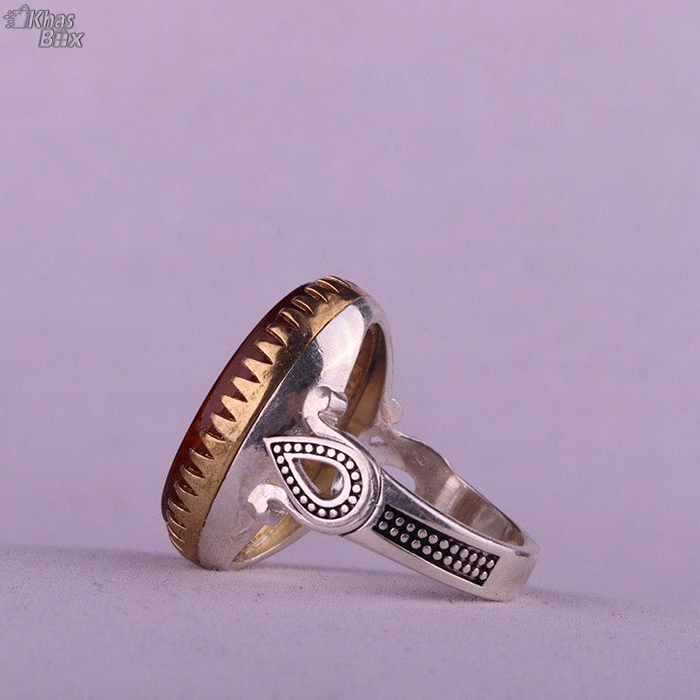 انگشتر کهربا خطی نقش حسین منی و انا من حسین وزن ۱۱/۸ گرم