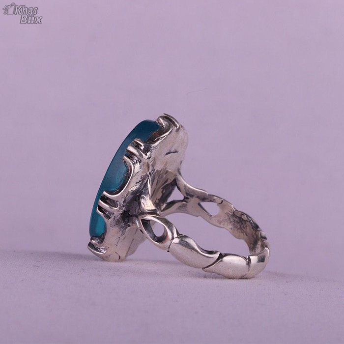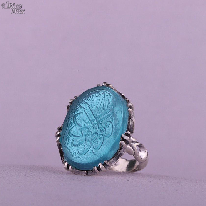 انگشتر کهربا خطی نقش افوض امری الا الله وزن ۱۰/۸ گرم