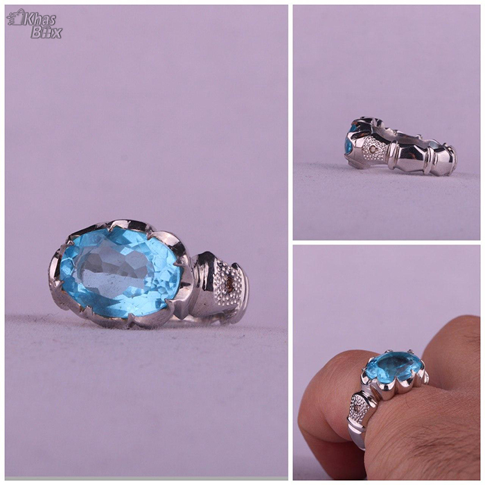 انگشتر توپاز سوئیس اصل رکاب دستساز استاد احمدی مخراجی دو عدد برلیان اصل وزن ۱۱/۴۸ گرم