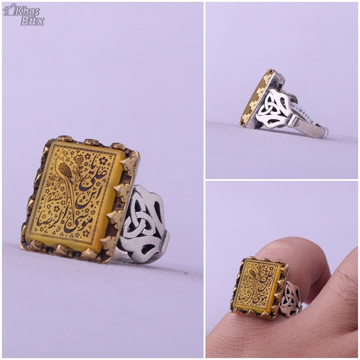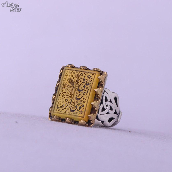 انگشتر عقیق زرد خطی نقش یا علی بن موسی الرضا وزن ۱۰/۴۴ گر پس از ثبت سفارش لطفا شماره سایزانگشت خود را به واحد پشتیبانی اعلام نمایید.