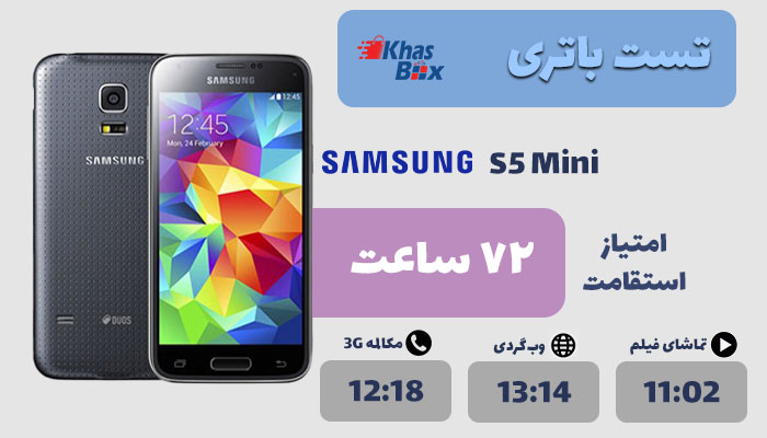 تست دوم تقریبا 11 ساعت مقاومت باتری در خصوص پخش ویدئو را نشان می دهد. این مقدار در شرایط یکسان و استاندارد به ثبت رسیده است و پیروزی باتری اصلی گوشی سامسونگ S5 mini نسبت به دیگر رقبای خود نظیر iPhone 5s را نشان می دهد.