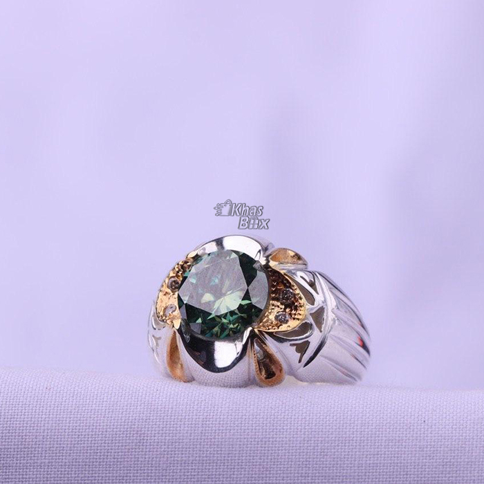 انگشتر موزانایت الماس روسی رکاب دستساز مخراجی ۴ عدد برلیان وزن ۱۸.۷۲ گرم