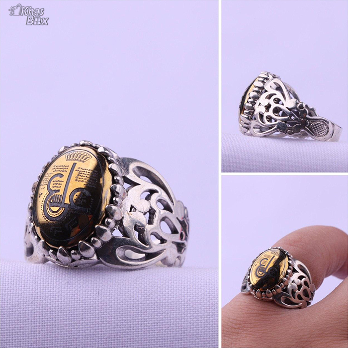 انگشتر حدید خطی نقش حرز عین علی وزن ۱۱/۳۵ گرم