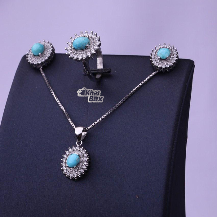 نیم ست فیروزه نیشابور وزن با زنجیر ۱۲/۸ گرم