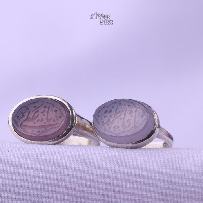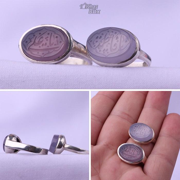 انگشتر ست عقیق کبود خطی نقش یاعلی یا فاطمه وزن ۱۸/۴۸ گرم