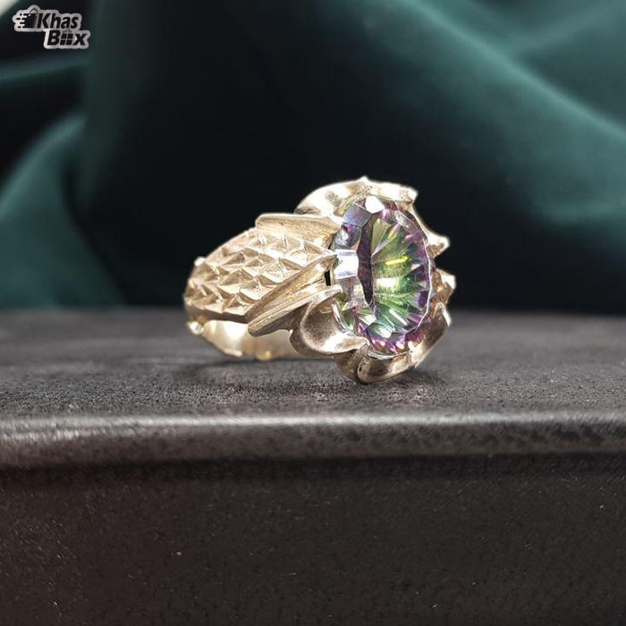 انگشتر جواهری کوارتز هفت رنگ مردانه