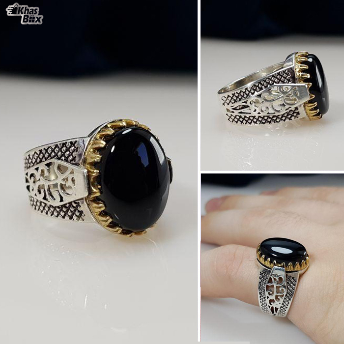 انگشتر نقره عقیق مشکی خوشرنگ