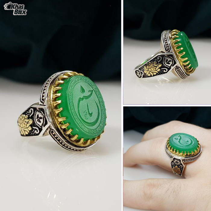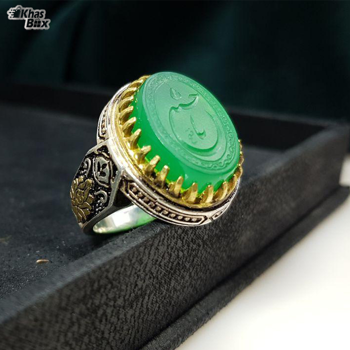 انگشتر نقره عقیق سبز خطی اصل مردانه