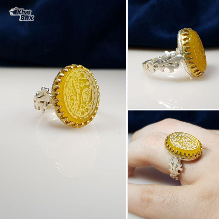 انگشتر نقره عقیق زرد نقش یا زهرا مردانه