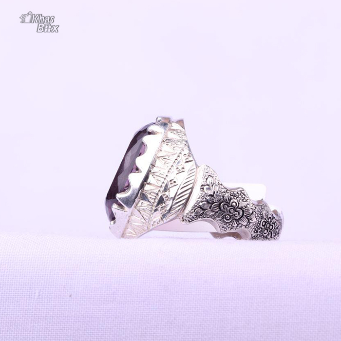 انگشتر نقره آمتیست رکاب دستساز قلمزنی مردانه