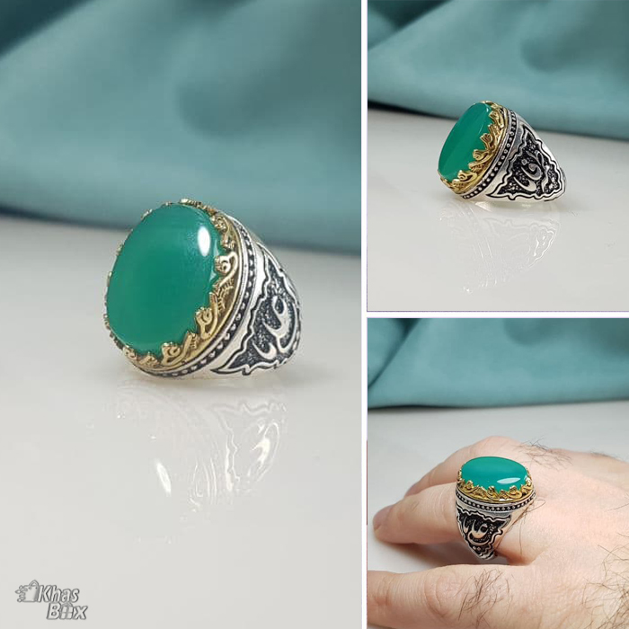 انگشتر عقیق مردانه خراسانی سبز کد 2602