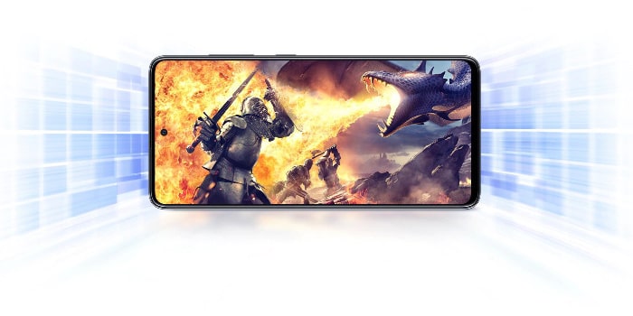 Galaxy A51 از پردازنده سامسونگ Exynos 9611 استفاده می کند، همان تراشه موجود در Galaxy A50s. این تراشه در کل نسخه ای با ساعت بالاتر از Exynos 9610 گلکسی A50 است. اشتباه نکنید، گوشی سامسونگ A51 عملکرد بسیار بهتری نسبت به نسخه قبلی خود ارائه می دهد. این گوشی با بهره گیری از یک رم ۶ گیگابایتی هر نیازی که از یک گوشی هوشمند داشته باشید را می تواند به آسانی رفع کند. گوشی موبایل A51 قادر به پشتیبانی از بازی PUBG شما در بالاترین تنظیمات گرافیکی بدون هیچ گونه افت فریمی خواهد بود. در مورد مقدار حافظه جانبی باید گفت این گوشی از ظرفیت 128 گیگابایت برخوردار است اما اگر نیازمند فضای بیشتری جهت ذخیره اطلاعات خود بودید، می توانید یک کارت حافظه جانبی تا سقف ۱ ترابایت را در اسلات اختصاصی این گوشی اضافه کنید.